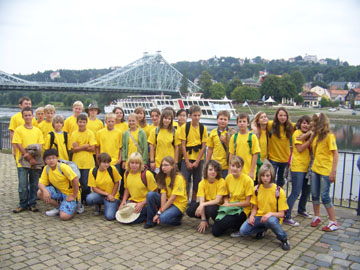 Am Mittwoch hieß es auch schon Abschied nehmen vom Brücke/Most-Zentrum. Mit dem Dampfschiff fuhren wir nach Pirna – alle einheitlich mit dem Friedrich-Schiller – Gymnasium – T-Shirt bekleidet – und wurden von Mitarbeitern des Gymnasiums herzlich empfangen. In Pirna angekommen, waren die tschechischen Kinder schon sehr auf das Internat und die Schule gespannt. Nach einer Mittagspause und einer kurzen Rede der Lehrer und des Direktors des Friedrich - Schiller-Gymnasiums hieß es mit ein paar Tränen in den Augen Abschied nehmen.